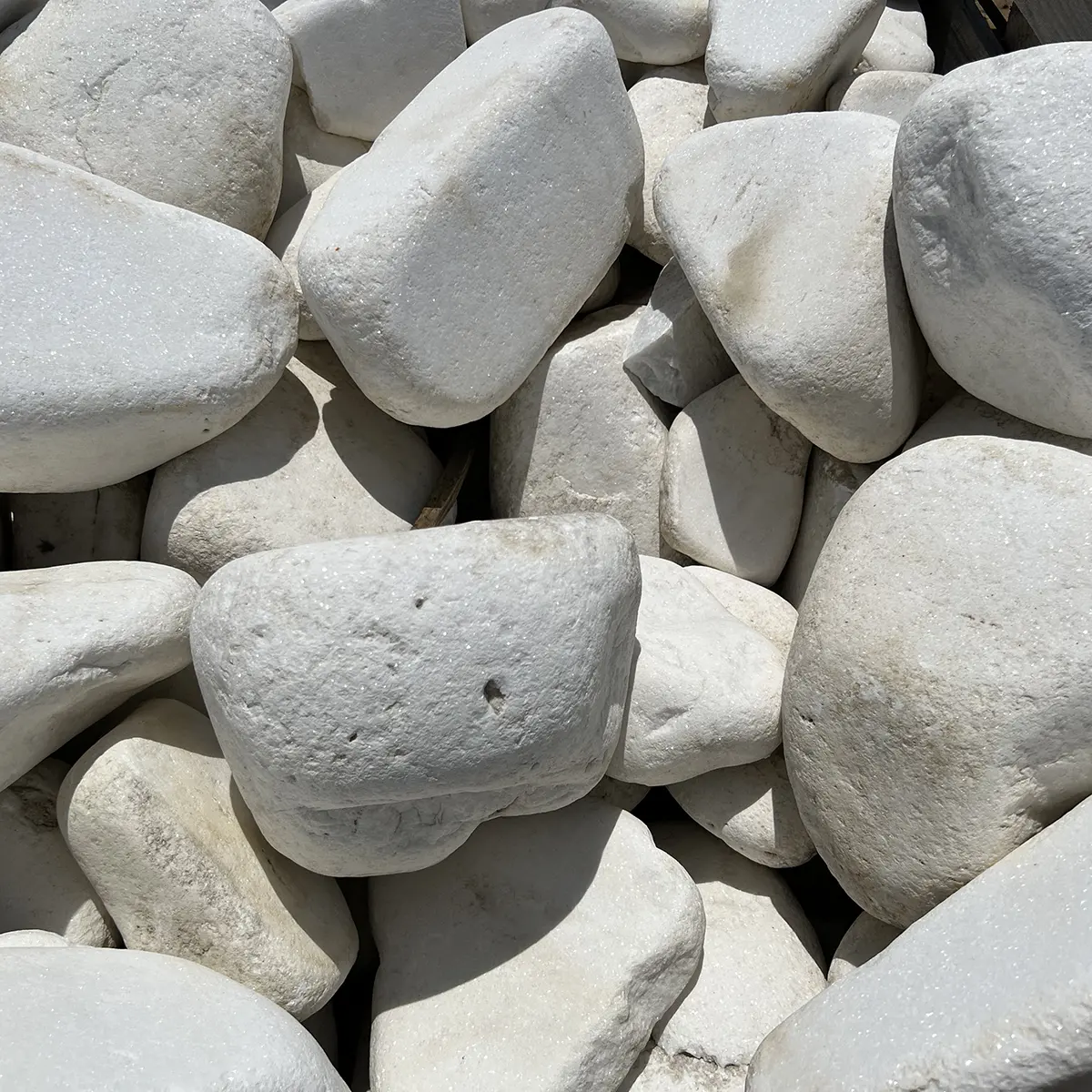 Santorini Premium White Stone (also called White Thassos Pebbles) is one of the purist natural white marble pebbles available in the world today. Santorini White Pebbles are used for Pebbled Floors, Water Features, Wall Covering, Swimming Pools, landscaping, garden shaping and decoration. In Santorini the pebbles are even used on roofs to reflect the sun light.